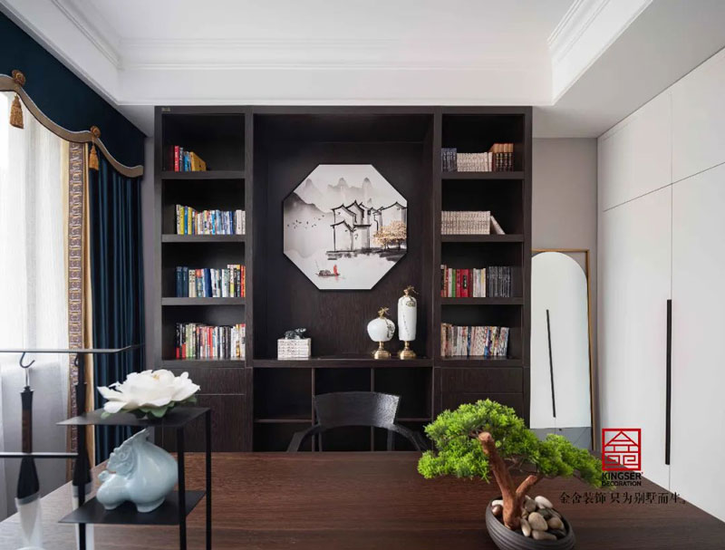 國賓壹號210㎡新中式風格裝修書房設計實景圖
