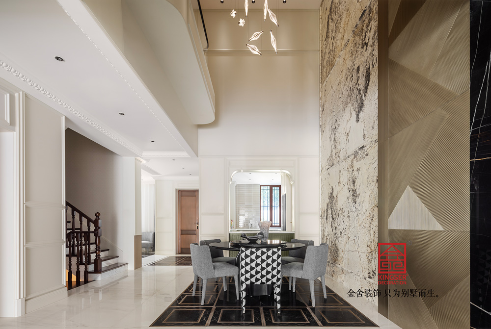 本作是石家莊別墅裝修-御河上院600㎡的別墅設計,從設計到施工再到完工經歷了一年半的時間,可謂是真的把每一個細節都考慮的十分通透,每個小的擺件,每個造型,每個材質的運用都真真切切的考慮周全。