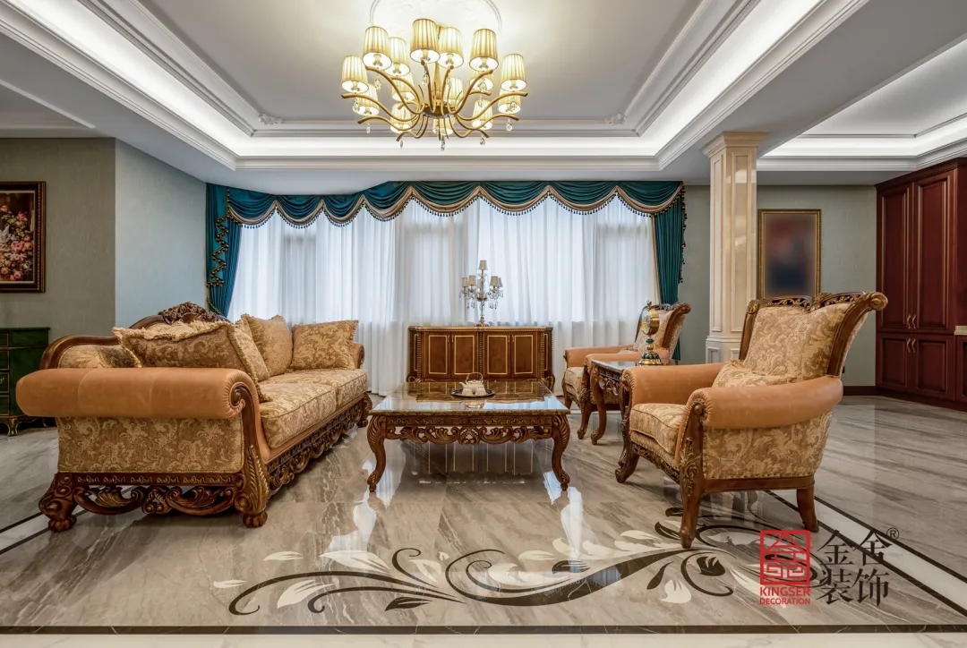 此案例為金舍裝飾-榮盛華府500平米歐式風格裝修實景。歐式風格,更像是一種多元化的思考方式,將懷古的浪漫情懷與現代人對生活的需求相結合,兼容華貴典雅與時尚現代,高雅而和諧是現代歐式的代名詞。歐洲文化豐富的藝術底蘊,開放、創新的設計思想及其尊貴的姿容展現在人們的眼前。