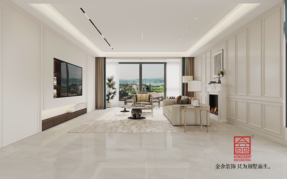 本客廳采用美式輕奢風格設計,力求在經典美式的大氣感中,融入輕奢的精致與時尚。