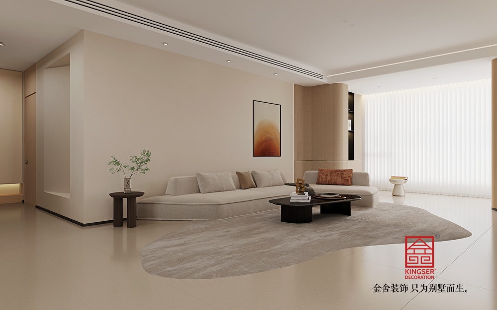 既滿足 211 平大戶型對空間開闊感與功能性的需求,又以原木的溫暖中和極簡的冷靜,傳遞出 “回歸自然、簡約舒適” 的生活態度,讓居者在簡潔的環境中感受原木帶來的自然治愈與品質生活。