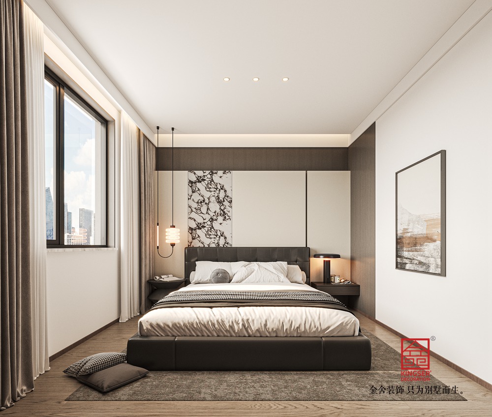 空間布局上,開放式設計模糊了功能區邊界,讓客廳與周邊區域形成自然互動。無主燈照明系統結合線性燈帶與嵌入式筒燈,營造出柔和且富有層次的光影效果,進一步提升了空間的高級氛圍。整體設計通過材質的細膩對比(如大理石的冷冽、皮革的溫潤、地毯的柔軟)與色彩的和諧搭配,詮釋了現代別墅生活的精致與從容,展現出 “簡約不簡單,奢華不張揚” 的設計哲學。