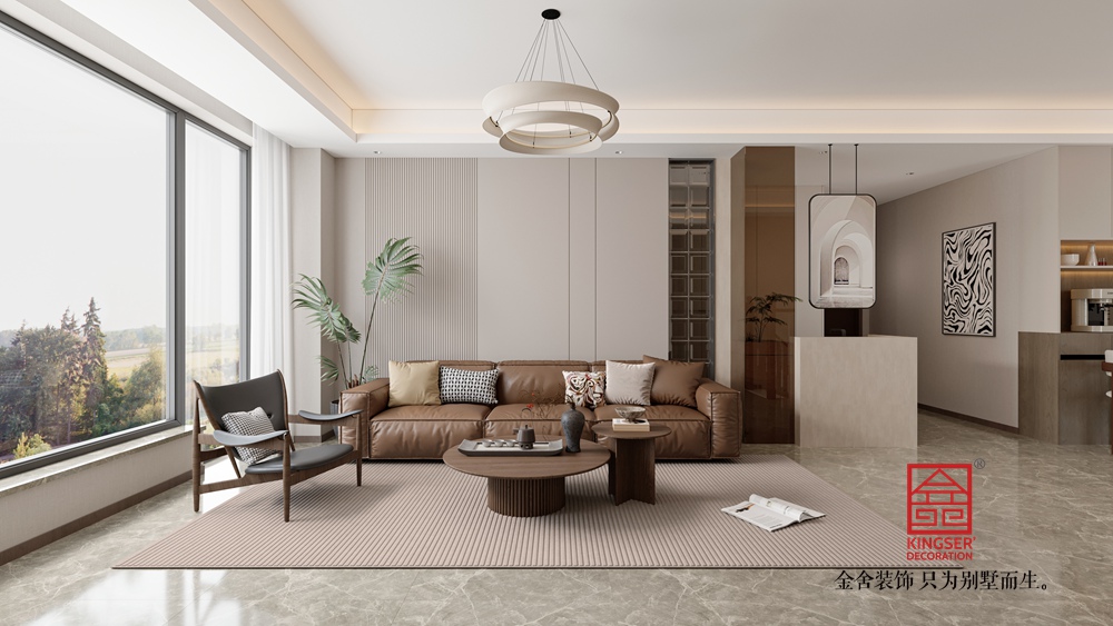 這個(gè)空間采用復(fù)古輕奢 + 暖調(diào)治愈的設(shè)計(jì)風(fēng)格,以深棕木作與暖米色墻面為基底,融入法式弧形吊頂、格紋門窗等細(xì)節(jié),既保留復(fù)古優(yōu)雅的質(zhì)感,又通過(guò)人字拼木地板增添溫暖肌理;軟裝搭配上,以繁花圖案沙發(fā)、復(fù)古綠單人椅呼應(yīng)濃郁的復(fù)古氛圍,搭配花紋地毯與鮮活花藝,柔化空間厚重感;功能區(qū)通過(guò)通頂收納柜實(shí)現(xiàn)整潔與展示兼具的效果,而黃銅吊燈、藝術(shù)擺件則提升精致度,整體既呈現(xiàn)出復(fù)古格調(diào)的松弛氛圍,又適配日常休閑與社交的多元需求。